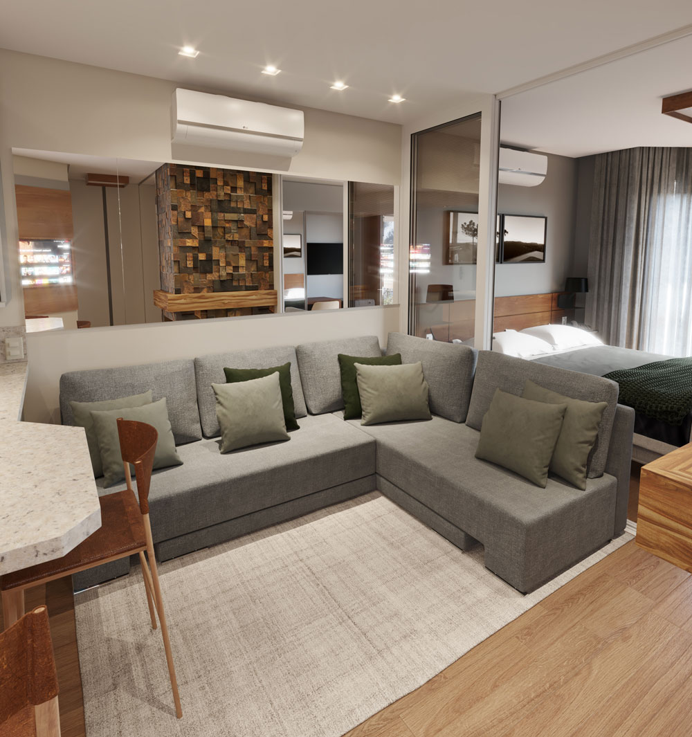 Em um empreendimento de alto padrão, com ambientes modernos e aconchegantes, seguindo a tendência dos flats,
