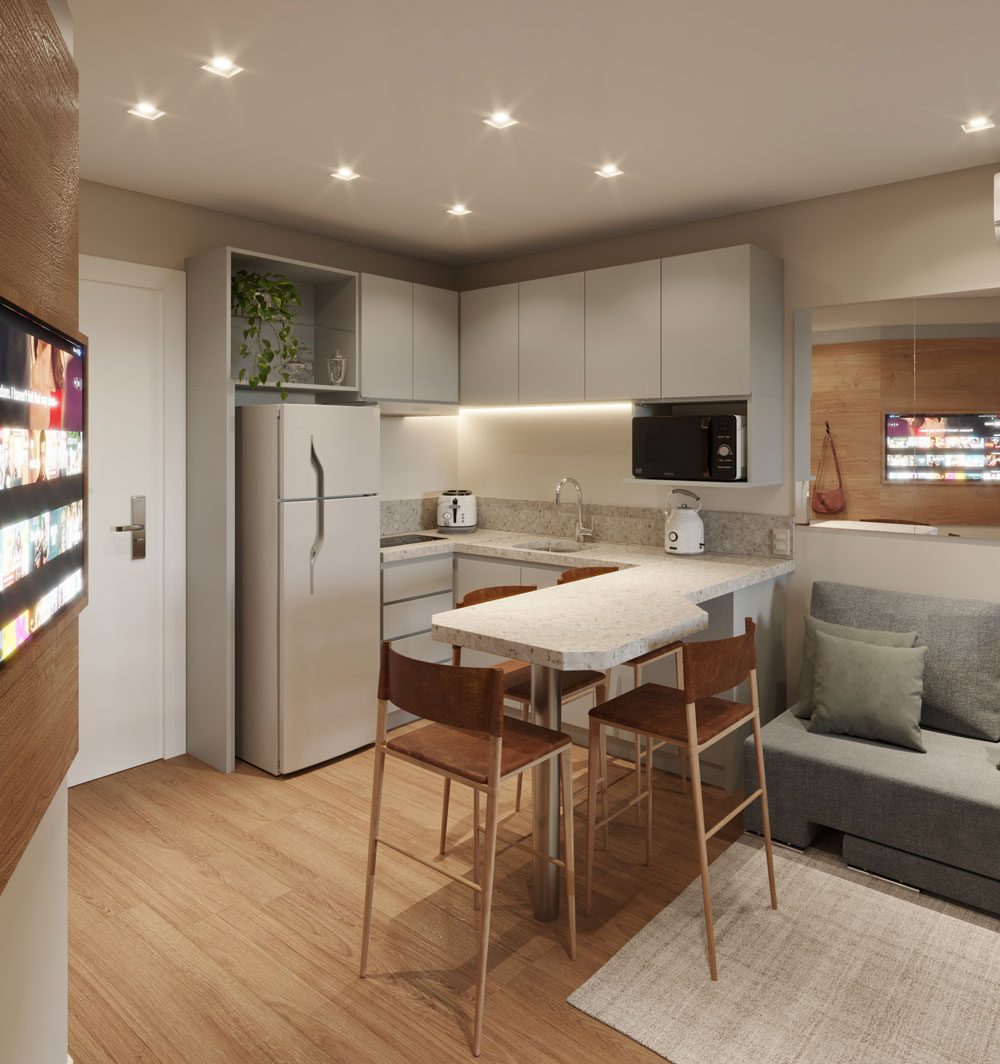 - Flats formatados para o modelo de negócio de locação por temporada.
